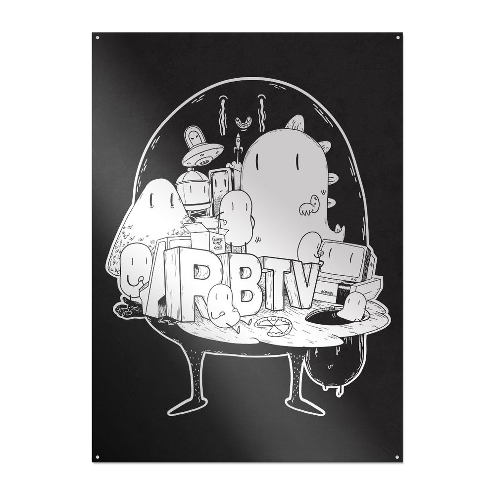 Auf dem Metallschild sieht man die Bohnen bei verschiedenen Tätigkeiten.