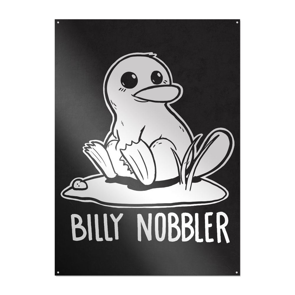 Auf dem Metallschild sieht man das Schnabeltier Billy Nobbler.