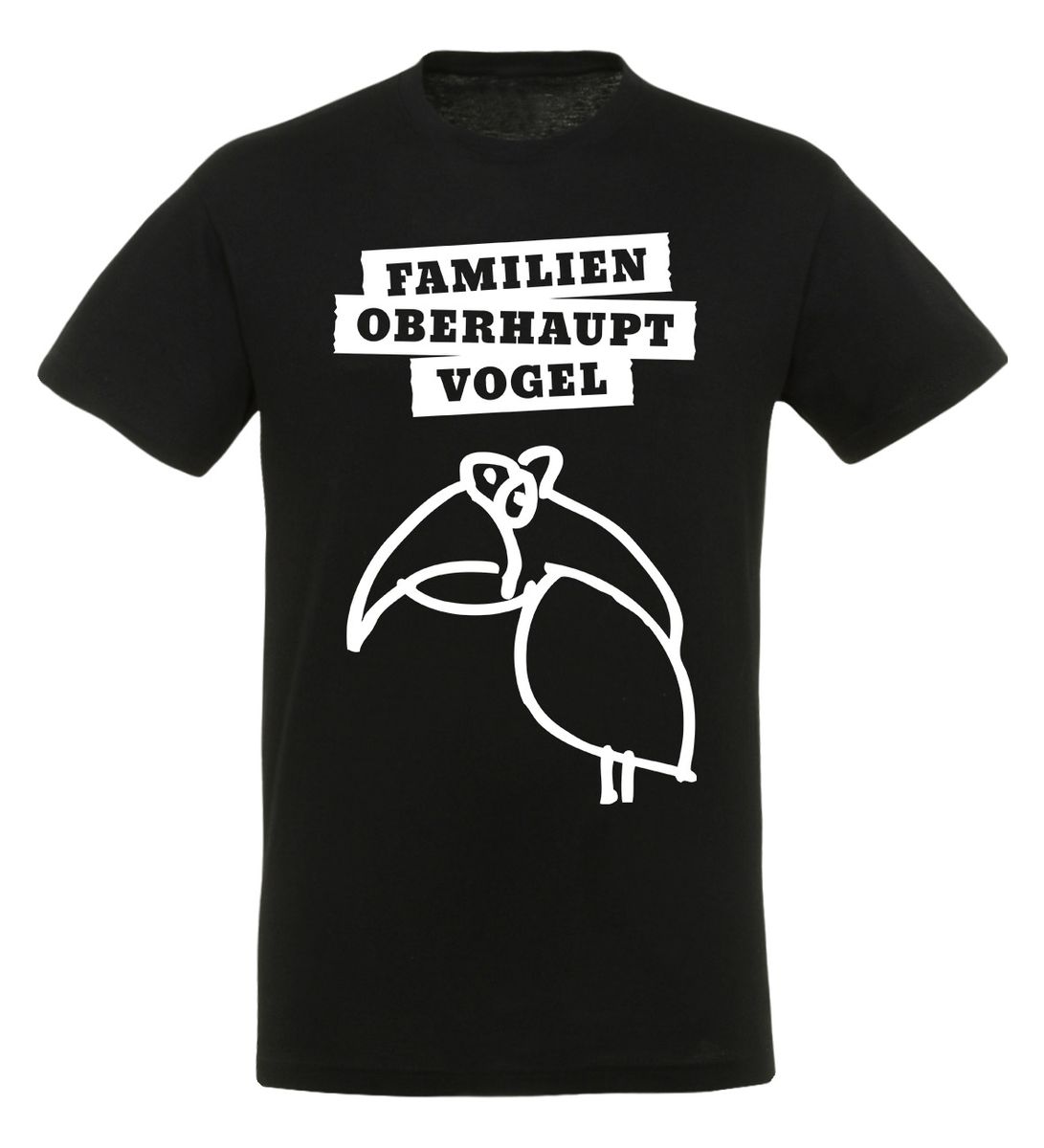 Das T-Shirt zeigt den Familienoberhauptvogel von Nils und Etienne.