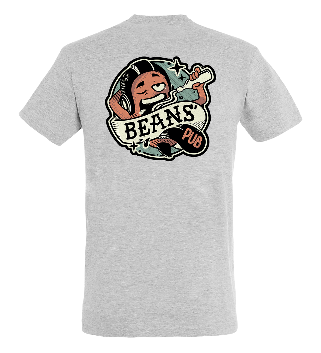 Das Shirt zeigt die Bohne mit dem Slogan "Beans Pub".