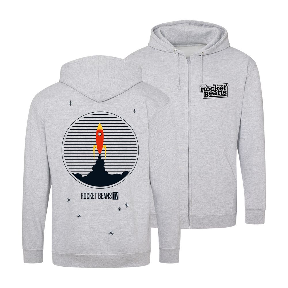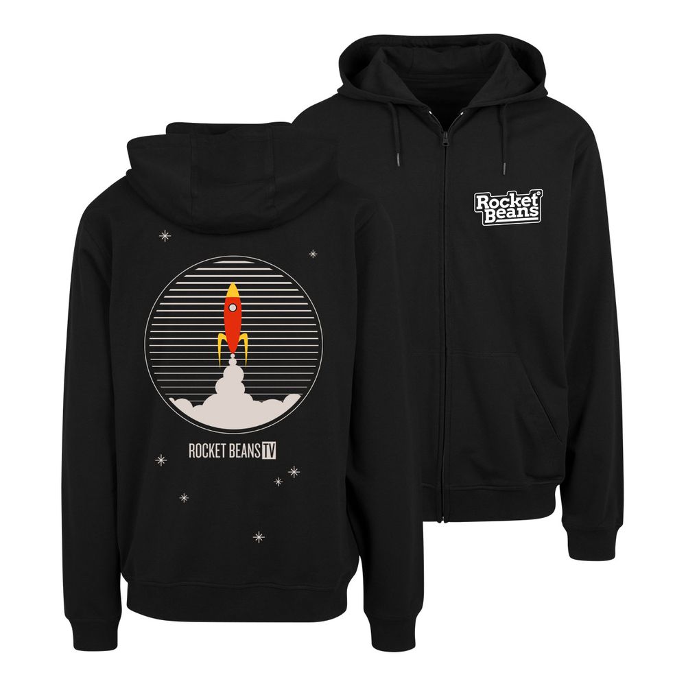 Der Zipper zeigt die Rakete der Rocket Beans auf der Rückseite und das Firmenlogo auf der Vorderseite.